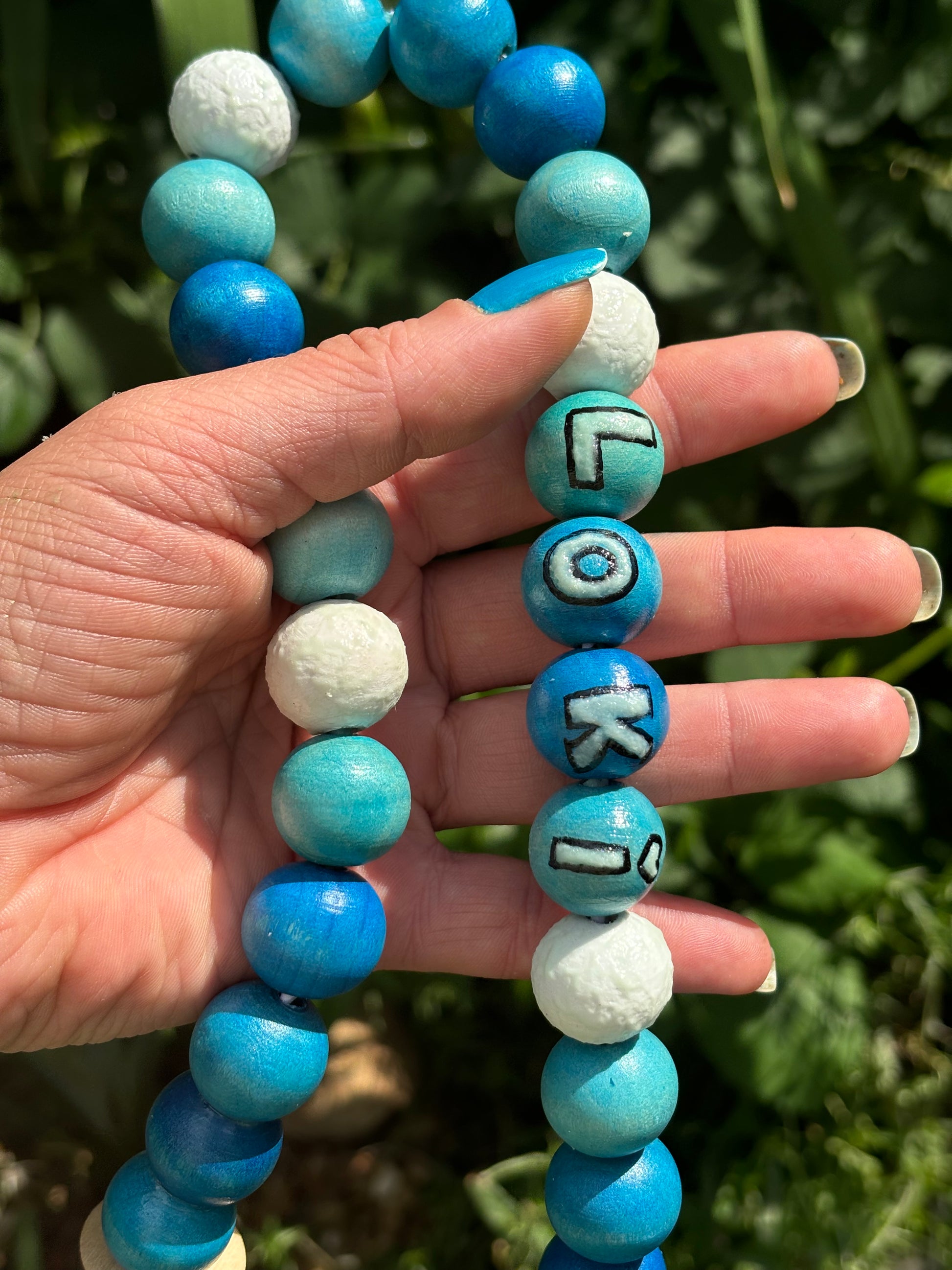 The necklace features different shades of blue beads, ranging from dark navy to light sky blue! Each shade adds its own unique charm, creating a stylish accessory that complements your dog's appearance with elegance and variety.