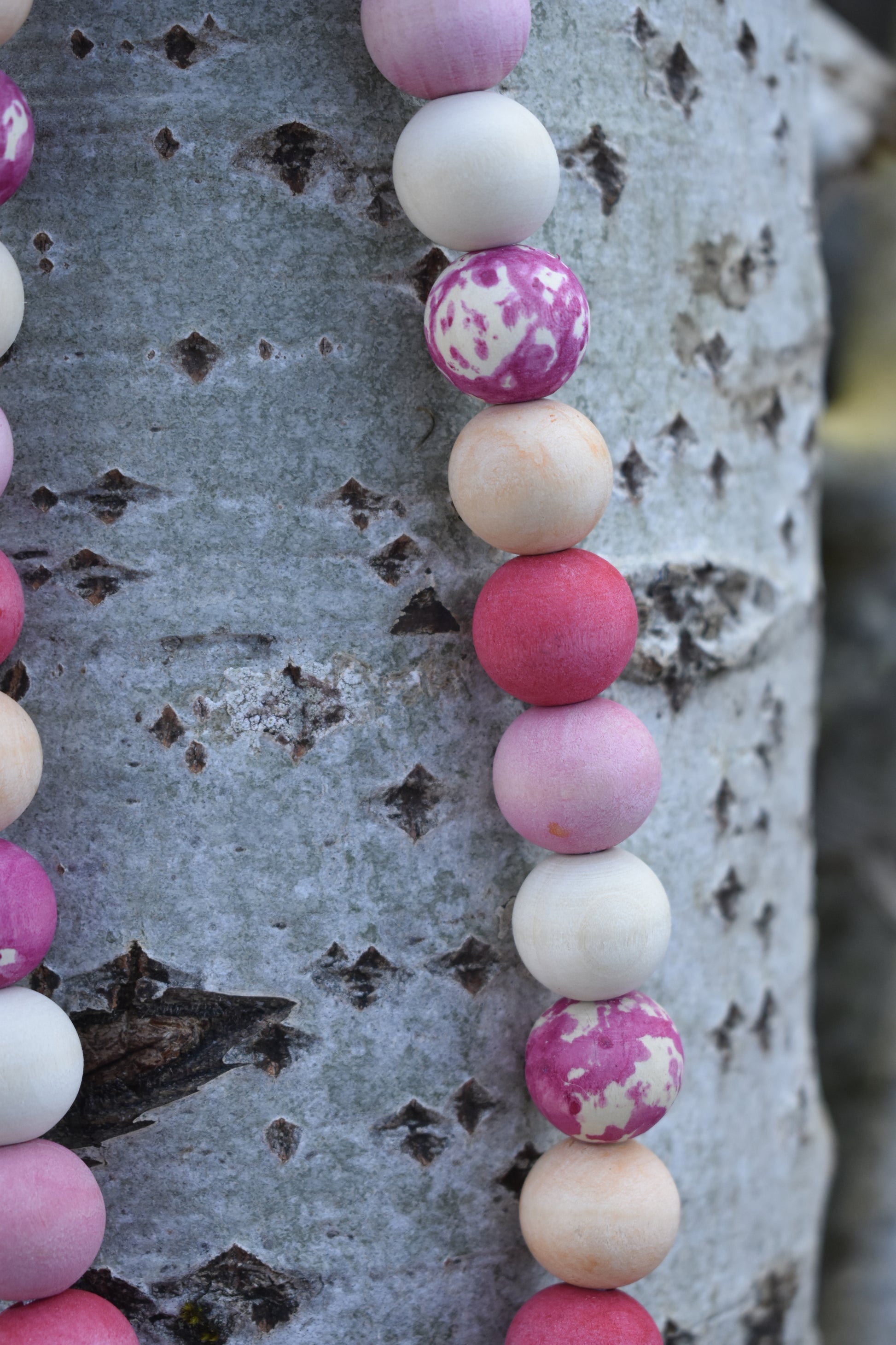 The necklace is adorned with multicolored pink beads, creating a lively and vibrant accessory for your dog. These beads showcase various shades and patterns of pink, from soft pastels to bright hues, blending together to form a playful and eye-catching design. The multicolored pink beads add a cheerful and charming touch to your dog's look, making the necklace a delightful addition to their attire.
