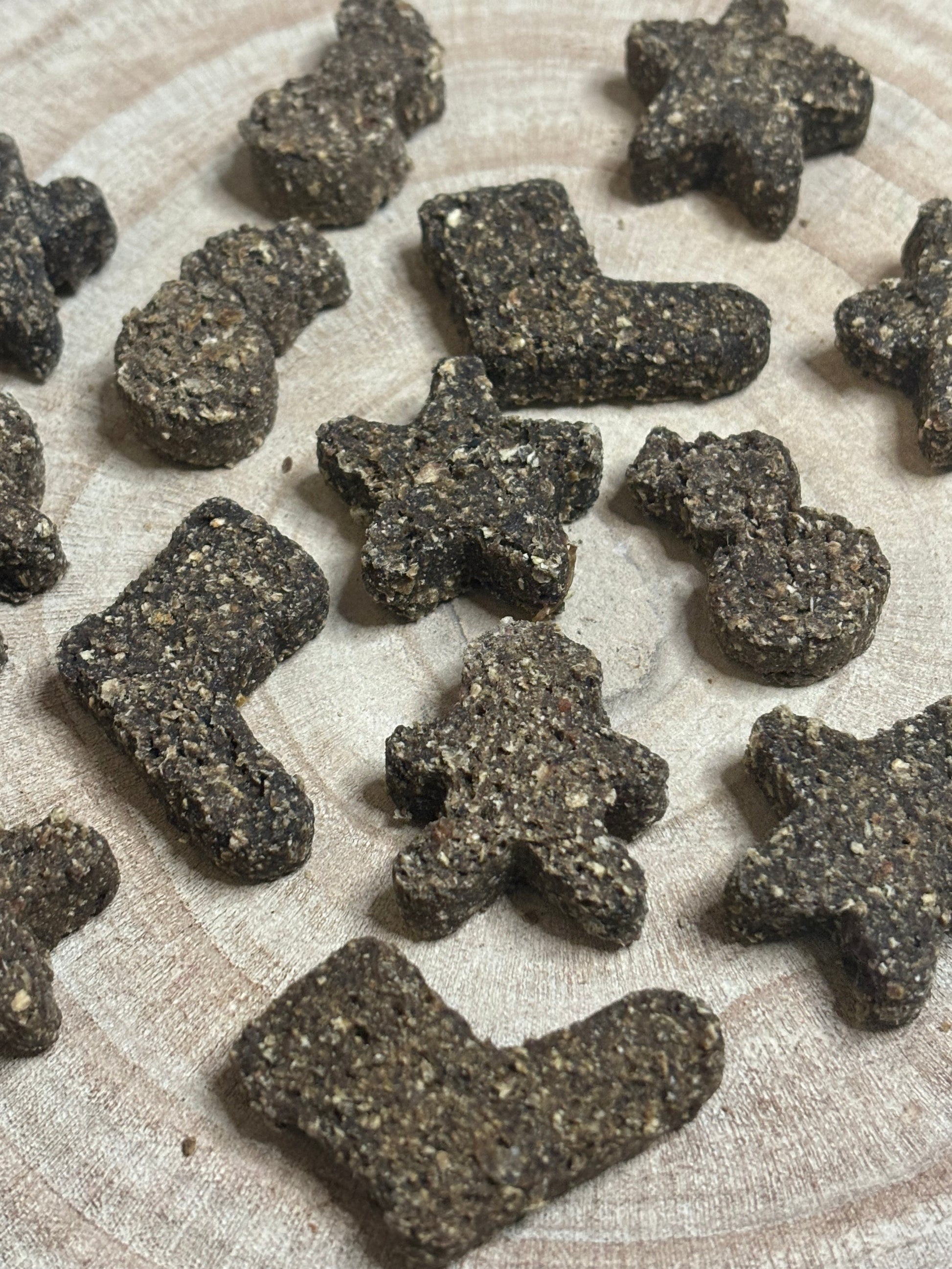 Treat your pup to a festive feast with our Gourmet Merry Mix, crafted from duck, turkey and partridge. These festive delights are in a variety of shapes - each bag is unique! - and made with real, high-quality meats to offer a rich, savoury flavour. Perfect for gifting or as a special seasonal snack, each treat is grain-free and gently dried to preserve nutrients and taste. Made with love and natural ingredients, because your dog deserves the best.