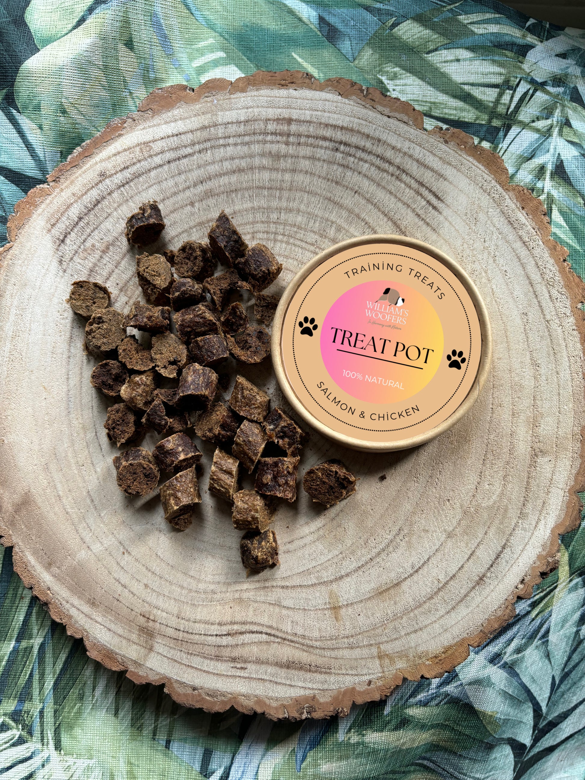 Our 100g Salmon and Chicken Pots are delicious and healthy too! Perfect as training treats for dogs with allergies, digestive issues or a sensitive stomach. They offer a great source of protein as well as being responsibly sourced and delicious.
